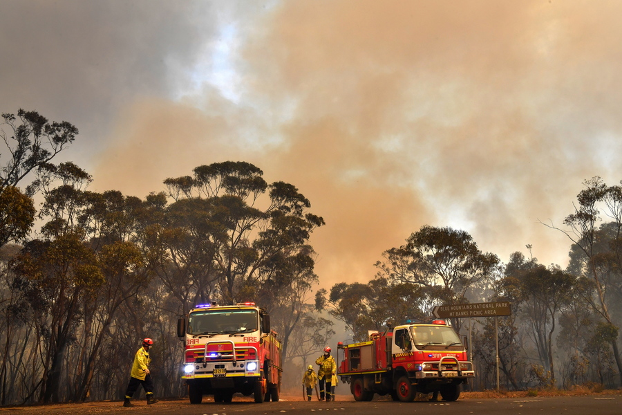 Δυνάμεις της Πυροσβεστικής και διασώστες στο Εθνικό Πάρκο των Blue Moountains, βοριοδυτικά του Σίδνευ. Σύμφωνα με τα ΜΜΕ, οι αυστριαλιανές αρχές προειδοποιούν για τις χειρότερες δυνατές περιστάσεις ενώ οι θερμοκρασίες ξεπερνούν τους 40 βαθμούς κελσίου EPA/DEAN LEWINS